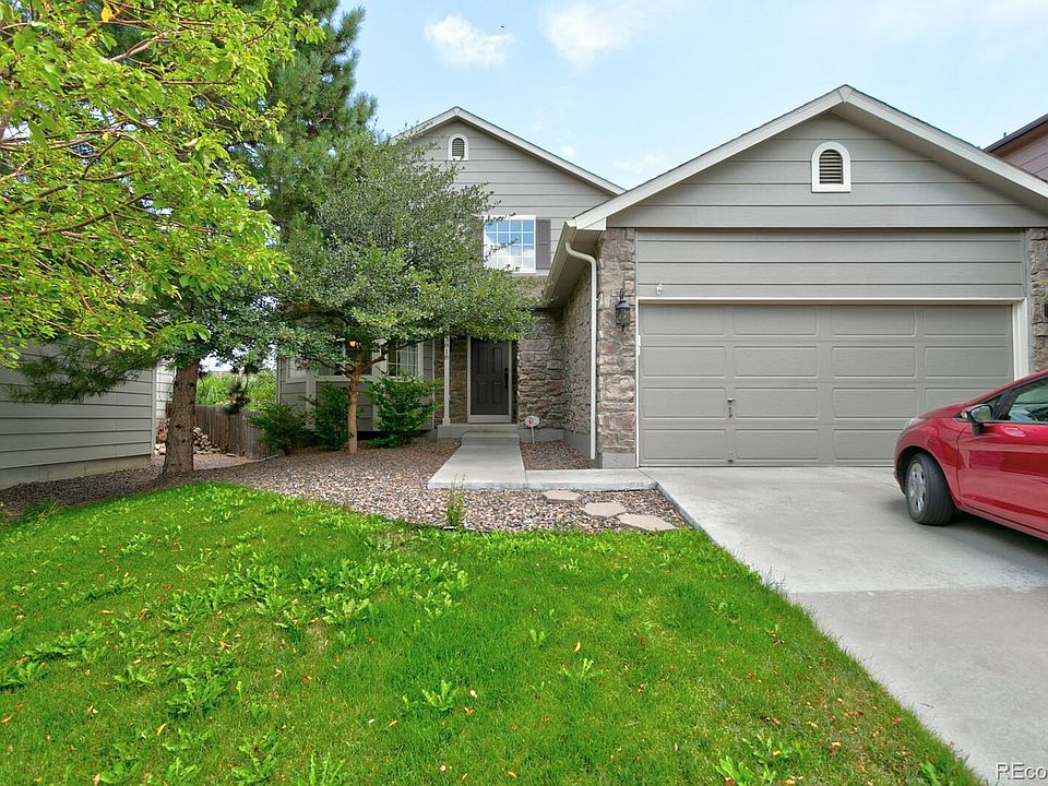 Price reduced! Don't miss out on this previous model home. A one-owner property which includes many custom upgrades. Beautiful hard wood floors draw you into the open floor plan with vaulted ceilings and abundant natural light. Almost everything in this home has been updated with top quality finishes including the kitchen, bathrooms, most light fixtures, smart thermostat, attic fan, alarm system, 2 barn doors, newer- roof, water heater, interior and exterior paint, carpet. The kitchen has really cool custom shelving made of reclaimed wood with super sharp white subway tile and white cabinets. The appliances are only a couple of years old. Amazing custom built-in shelving in dining room and family room which also has a cozy gas fireplace. Primary bathroom and basement bathroom boast beautiful tile work and oversized showers. The basement bedroom could be considered an additional primary suite with it's own walk-in closet. Garage is insulated with finished walls. Close to grocery stores, Orchard Town Center, Denver Premium Outlets, golf courses, parks and schools.