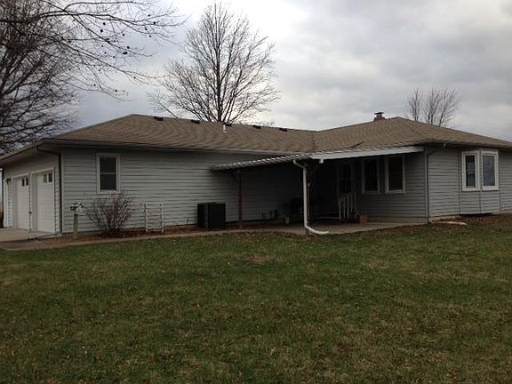 Custom Built Home with many extras. Nice size rooms, plenty of closets, many built ins, a den, pantry and a great room leading to a covered patio with country view, partially finished basement with large family room, wood stove, kitchenette and a half bath to include a storm shelter. Additional Detached garage w/concrete floor, electricity and new roof. Large yard right at the end of city limits.