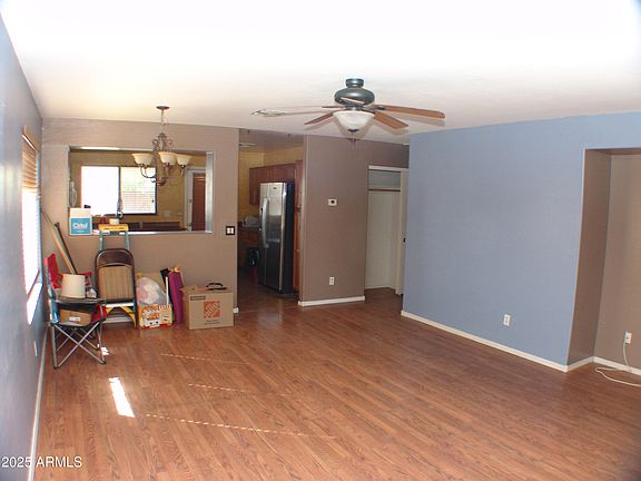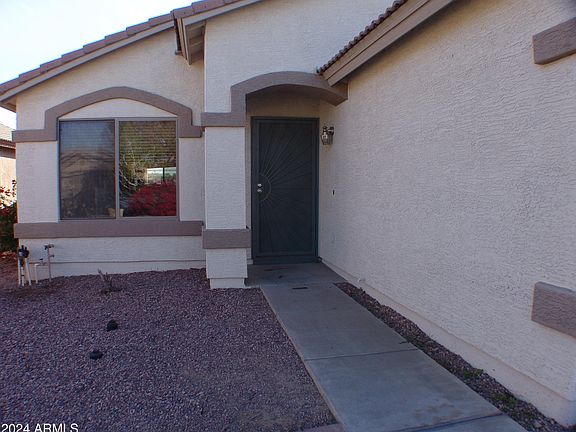 One owner property, terrific (Investor or Owner fixer-upper) opportunity to purchase this 3 bedroom and 2 bath (1247 sf) built in 2003 with no house behind. Covered rear patio area, very private back yard with grassy play area for the kids and/or pets. Metal security doors installed front and rear. Will need a little refresh to make it perfect again (price reflects some work needed and owner will not fund any updates. The property will be sold as seen, (AS-IS WHERE-IS), interior paint and some carpeting replaced will make it perfect again. Two car garage with built-in shelves. Anticipate some noise from nearby Luke AFB.