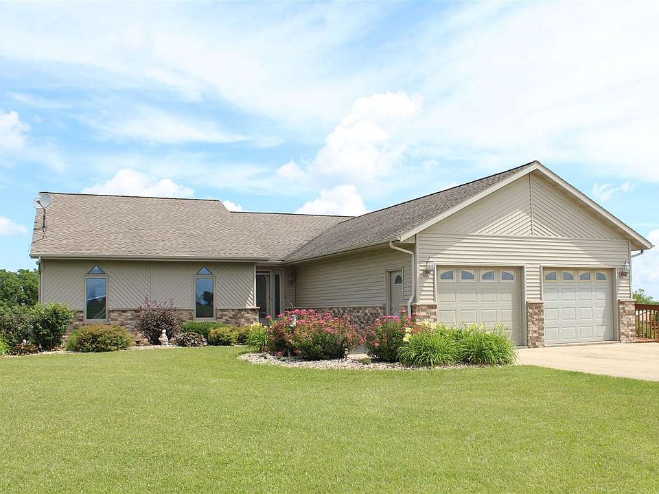 Over 3700' of Finished Living Area on this 11+ acre walk out Ranch Home! There are 4 Bedrooms, 2 1/2 baths, 2 large family room, gas fireplace and lots of garage space. This home has a master huge suite, Large walk in closet and the master bath has a whirlpool tub, shower and makeup area. The 28' diameter round pool is surrounded by a spacious deck and is perfect for entertaining. This one of a kind property is located in a quiet setting just West of Dubuque and has wildlife of all varities. The view from the deck is amazing as you overlook the Dubuque Skyline and you can see as far as the Sinsinawa Mound. There is also a 40' x 60' steel storage shed complete with concrete floor, electricity and water. This property is nicely landscaped and there are no covenants so you are free to enjoy this setting to the max. Besides the storage shed there is a capped 23 x 30 capped garage under so you will never run out of shop space or toy storage. There is a 13 x15 hot tub room that could easily be coverted to a 5th bedroom. The possibilities are endless with the space available in this property.