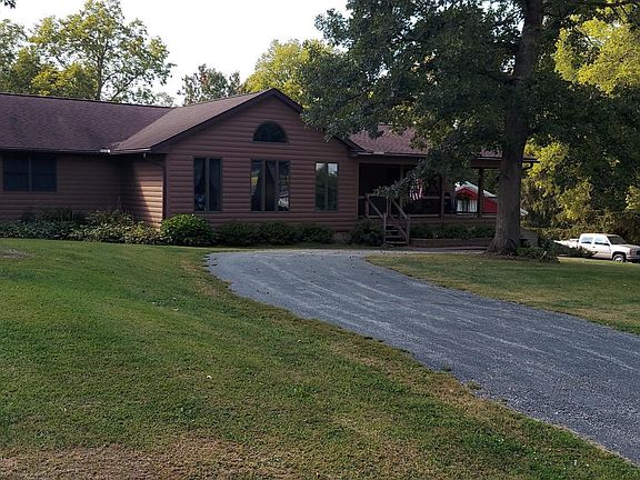Nestled on 5 acres w/2 acres wooded for hunting or enjoying nature’s serenity + a relaxing creek is this exquisite log sided home on hard surface road, $400 ann road maint & water. Circular Blk top drive; 13 x 28 cedar gated front deck for warm weather comfort. Kit features hickory cabinetry w/ 2 pantries, open plate rack, Bkfast bar; dbl doors open to 12 x 28 cedar deck overlooking meticulously manicured lawn. LR exudes ambiance w/electric fireplace-perfect for cold winter evenings. Huge MBR w/walk in closet/bath w/jetted tub. 2nd kit in Bsm’t; Fmly Rm, freezer rm w/WI pantry & exits to huge 2 c gar. 4th non-conforming BR. Heated 36x48 open span metal shed w/office, . Furnace heat exchanger ’23; WH '25; leaf Filter gutter w/Transferrable guarantee. DON’T MISS OUT ON THIS GORGEOUS LOG HOME IN TRANQUIL SETTING. 14-mo Home Warranty provided to new buyer. ALL OFFERS WILL BE OPENED 5PM FRIDAY SEPT 26TH.