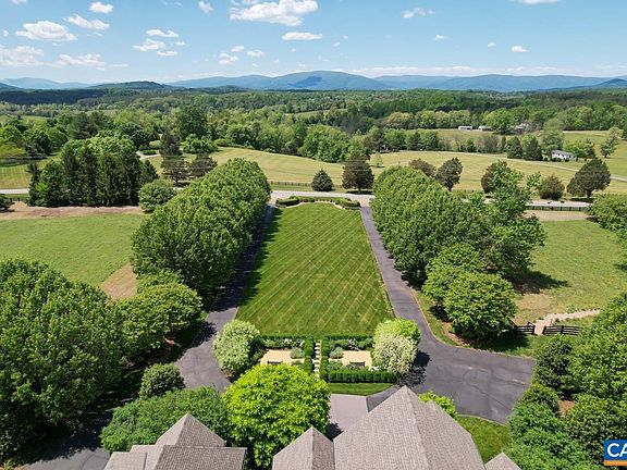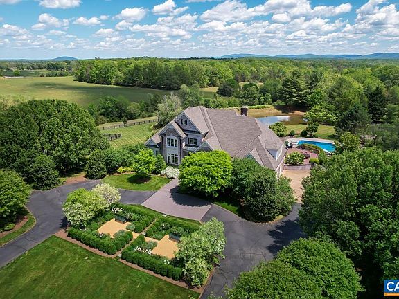 Seeking stunning 360-degree mountain views just minutes from town? Experience unparalleled luxury in this distinguished residence on Garth Road. Renovated by Alexander Nicholson, this property features a charming pear tree-lined driveway and is ideally situated less than 15 minutes west of town, directly across from Oakencroft Farm and Winery. This 7,239 sq. ft. masterpiece offers breathtaking panoramic vistas of the Blue Ridge in a serene pastoral setting. Inside, you'll find six luxurious bedrooms, a vaulted-ceiling family room, an oversized dining area, and a gourmet kitchen equipped with a Wolf Range, two dishwashers, and an additional wall oven. The estate seamlessly integrates with its surroundings, featuring a delightful wildflower field in the summer, pond, back deck, pool, and a barn. With its dramatic indoor-outdoor design, this residence epitomizes refined elegance and elevated living.