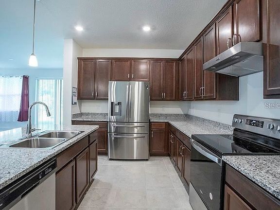 Beautiful new built single-story home located in Tivoli Reserve. This ENERGY STAR® certified home features four bedrooms, two bathrooms, two car garage, with 2333 living sq ft. As you enter the Foyer you will see the spacious dining and living room area with ceramic tiles throughout. The sliding door access the covered back patio which is perfect for outdoor relaxation overlooking the tranquil nature conservation. The modern kitchen upgrades include granite countertops with 42" upper cabinets, stainless steel appliances, recess and pendant lighting, a walk-in pantry and the kitchen island has a breakfast bar that is perfect for family gatherings. The private master suite is spacious with a large walk-in closet, and the ensuite master bath features a walk-in shower, linen closet, and dual vanity sink. Tivoli Reserve is a wonderful community to raise a family. This home comes with a 10-year structural warranty and one-year workmanship & material warranty. Property is centrally located in Davenport with easy access to I-4, the turnpike and Poinciana parkway. Close to theme parks, airports, restaurants and so much more. Schedule your showing today.