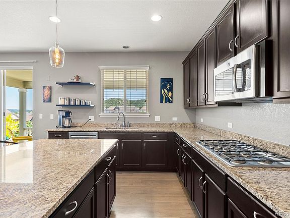 Discover the pinnacle of refined living at 1382 Raindrop Way, nestled in the charming enclave of Castle Rock, Colorado. This exquisite 6-bedroom, 5-bathroom residence spans a generous 4,334 square feet, nestled on a prime 7,623 square foot corner lot. The elegant design is complemented by a 3-car attached garage and a finished basement, offering ample space and convenience. Step inside to discover an array of luxurious amenities, including a modern eat-in kitchen with a granite island, 42" cabinets, cooktop, double oven, and views from the kitchen sink. The main level's formal dining room and high ceilings create an inviting ambiance for entertaining. Also enjoy a dedicated office space with custom built-ins on the main level. The primary suite, situated off the spacious second level loft, is a sanctuary featuring two walk-in closets and a sumptuous 5-piece bath. Three additional bedrooms on the second level, one of which setup with its own en-suite bath and walk-in closet. Downstairs you’ll find space for whatever you love to do, in this case golf and exercise. Keep the activity filled basement or transform into the space of your dreams, the sky’s the limit! Head over to Ridgeline Open Space, 367 acres of hiking and biking trails and enjoy a 4 minute walk to Bison Park that has tennis courts and playgrounds as well as two neighborhood pools with kids splash park. Located just minutes from Colorado's premier golf courses, this contemporary gem is a haven for luxury living. ***Preferred Lender offering $7,500 concession to Buyer! May be used towards closing costs, permanent interest rate buy downs and/or a 1-0 buy down). Offered by Guaranteed Rate Affinity - reach out to Matt Cope for more information (303-854-7443 or matt.cope@gmail.com).
