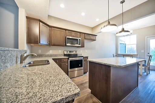 New townhome in beautiful Autumn Ridge. This home features a spacious kitchen with island and granite countertops throughout as well as a roomy pantry. Main floor has 9 foot ceilings and plenty of storage space and closets. Hardwood stairs lead up to the bedrooms and separate laundry room. Large master suite with vaulted ceiling, beautiful tiled shower, garden tub and large walk-in closet. Photos are of a similar unit in this development with a similar floor plan.