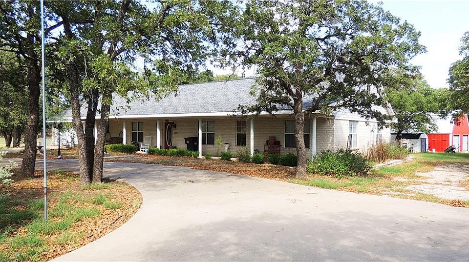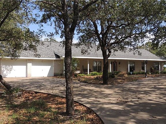 This is a lovely ranch with open floor plan on acreage, surrounded by ranches. Nestled in a treed setting, the house has a large front covered sitting porch. Lots of room for parking! Property is fenced, cross fenced & gated. The back of the acreage has a pond, a big red barn type workshop with electricity. The interior features an open floor plan with large rooms and abundant storage. Wood look laminate flooring is in living, dining and kitchen areas with carpet in the bedrooms. 2 of the bathrooms have claw foot soaking tubs. The roof is a year old. Close proximity to Weatherford. New survey online. Motivated seller, reasonably priced home knowing some updating is needed based on personal preferences.