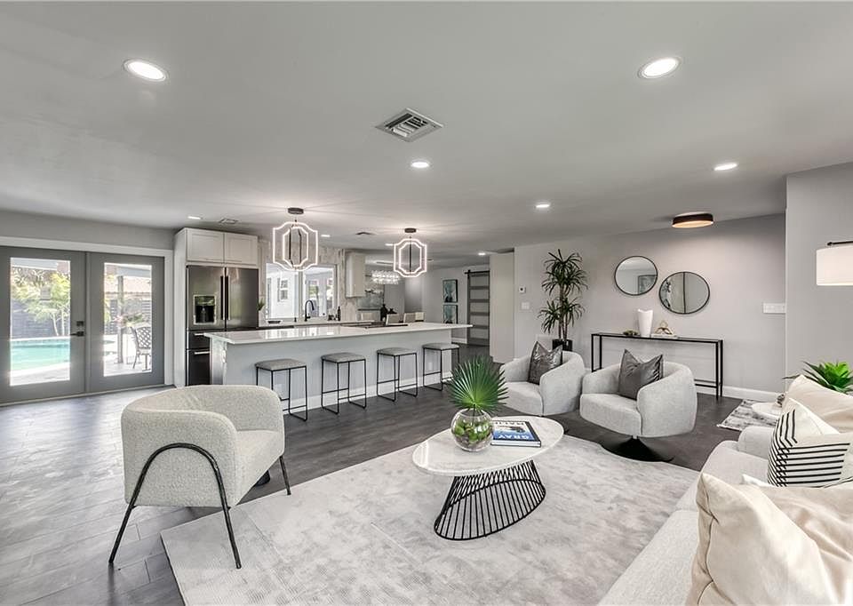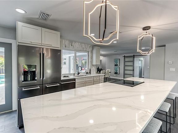Completely renovated 4 bed/2 bath pool home in the highly sought after Addison Mizner school district. This home was upgraded from top to bottom. Everything is new! Impact windows / doors, new ac. The updated kitchen offers an oversized marble island, black stainless steel appliances, stylish backsplash, modern cabinets and lighting. An open floorplan allows for easy entertaining. There is a large formal dining area with direct access to the bar that includes storage and a wine refrigerator. Both bathrooms have matching floating vanities and pristine tile work in the showers. The wet laundry room / mud room has a closet and high end washing machine and dryer. Outside you will find a large resurfaced pool with new tile, a covered seating area, and plenty of yard space. New roof coming soon!