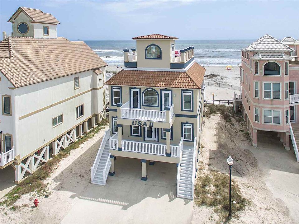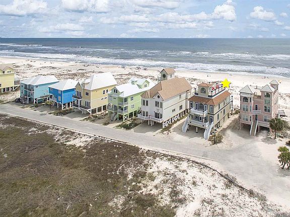 This Beautiful five bedroom Beach front house is located in the private Dunes subdivision. Private beach, gated subdivision with Pool & a very low density neighborhood. Newly updated with all new windows & doors with Florida rated Hurricane Glass. NEW ROOFTOP DECK, with new Trex deck furniture & railings that offer 180 degree panoramic views of the Gulf and also partial views of Mobile Bay. The house has been freshly painted inside & out and has new flooring in the bedrooms. This beautiful home has an elevator to each interior floor. The historical Ft. Morgan is just a mile away and you can even see one of the old ft Morgan bunkers from this house! Journey to Fort Morgan where the white sandy beaches of the Gulf will sooth and rejuvenate your soul. You will discover that there's more to see and do than you ever imagined where the Gulf meets the Bay.