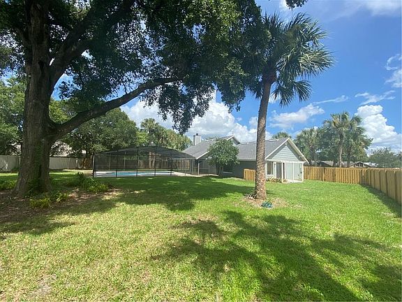 REDUCED TO SELL! Must see this spacious open floor plan 3 bedroom 2 bath pool home located in a beautiful quiet well maintained and desirable Winter Springs neighborhood situated on a large irregular shaped half-acre fenced lot with beautiful oak trees, with fruit trees, solar heated screened pool with large patio deck in area. Vaulted wood beam ceilings, upgraded stainless steel appliances, custom cabinets kitchen throughout the home, eat-in area off of the kitchen offering convenient dining. Spacious master bath includes a spacious roman bath, step down shower with walk-in closet. Comes with a seperate laundry room area with front load washer-dryers and built-in floor to ceiling upgraded cabinets for storage. Porcelain tile floors throughout for easy cleaning. Has a 2 car garage with storage access. This is a home for those that desire to live in an upscale neighborhood at a great price! BRING AN OFFER!!