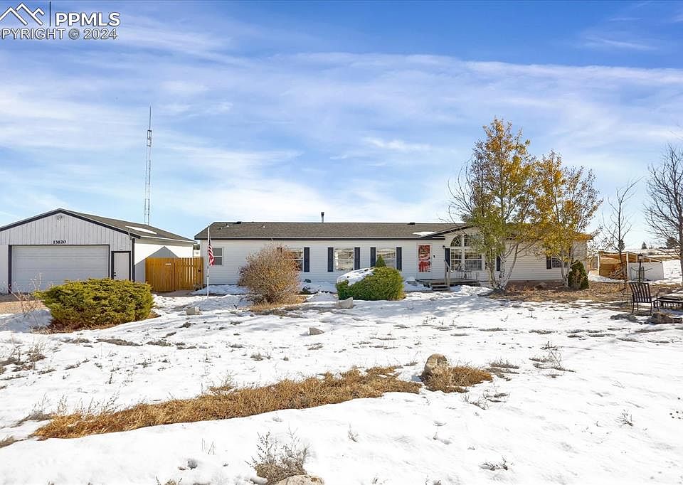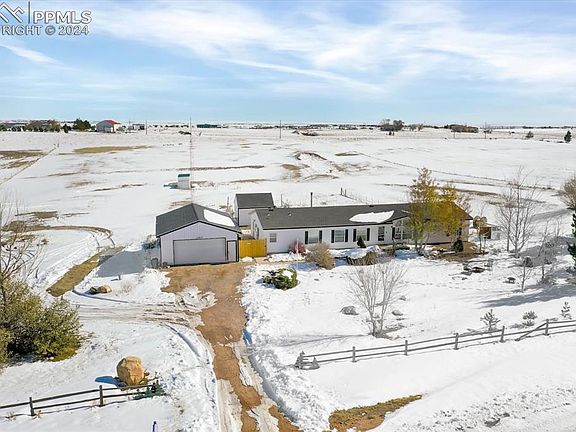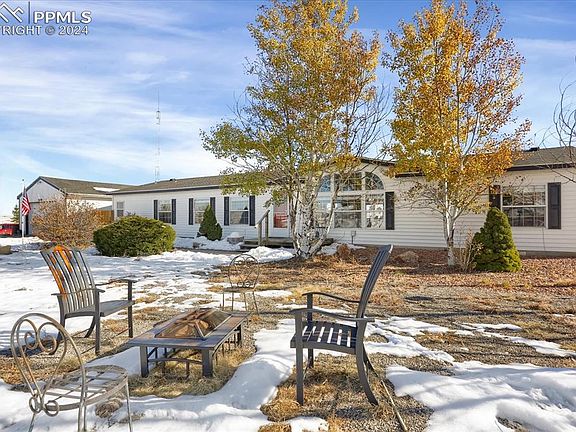 Main level living! Close to amenities, only 6.5 miles from the Falcon Walmart and 20 minutes to the Powers corridor. This 2,100+ square foot, five bed, two bath modular sits on a little over five acres, zoned for horses! Tastefully updated within the last two years, carpet, luxury vinyl throughout the living and dining spaces. Updated kitchen to include stainless appliances, cabinets and granite counter tops! Large primary suite, attached five piece bath with tile flooring and walk-in closet. Four secondary bedrooms (one is non-conforming) and the secondary full bath. Newer Endeavor wood burning stove, ideal for heating the whole house. Lower maintenance exterior vinyl siding. Oversized 24x32 detached garage and a 13x16 storage shed with two water hydrants. There is also a 100 yard shooting range!