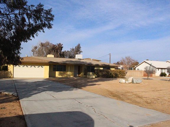 This Home is Located in one of Apple Valley's quiet neighborhood. This house a 2 fire place and a built in Bar-B-Que grill in the kitchen area. 3 bed rooms, 2 bath with 1 attached 2 car garage and a detached 2 car garage with a garage pit. Perfect garage for a mechanic. Oh and did I mention it has a 12 ft wide, 14 ft high and 54 ft deep RV garage. Situated on 1 acre land, enough space for all your outdoor toys. Property is also zoned for horses. Property to be sold As-Is.