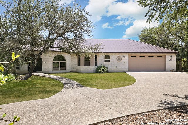 Home on over 1 acre! Exquisite, custom built home in the desirable, gated community of Helotes Park Terrace. Home sits on just over an acre with a greenbelt, no back neighbors! You are welcomed into this home with gorgeous metal double doors that flow into the front Florida room/Sun Room. This space impresses with gorgeous flooring and spaciousness. You'll love the open floor plan and custom Kitchen island and Stone arch. Jenn Aire and Kitchen Aid appliances. Decorative French chandelier in breakfast area. Living room offers a beautiful stone fireplace that is the centerpiece to gather around with family and friends! Home has custom plantation shutters throughout the house. The large primary bedroom is very grand with built in wall cabinets. Secondary bedrooms are also very spacious. Adjacent to garage is an additional room that is a flex area and can be used as a craft room, home gym, etc. This room was used at the owner's Artist workshop. The exterior back porch/deck is absolutely beautiful with serene breezes that flow through. Enjoy the view of the back yard, as you sit back, relax and enjoy winding down from your day!