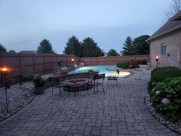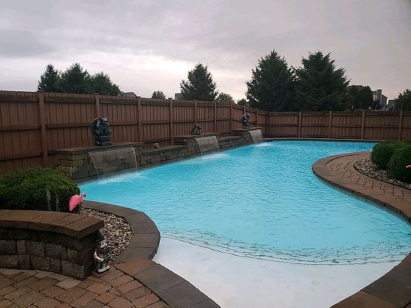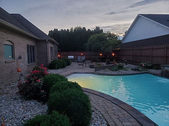 Generously proportioned 4BR 2.5BA custom home offers a warm feeling of spaciousness and quality throughout. Cheerful kitchen w/tons of work space, Corian counters, Hickory cabinets & breakfast nook, elegant dining room, office w/French doors & hardwood floors, opulent 2-story living room w/fireplace, main level master suite w/his & her walk-in closets & large European shower, bonus room w/wet bar, central radio system, 9' ceilings, arched openings, transom windows & 3-car garage. Plus, incredible outdoor entertaining space with curved salt water in-ground pool featuring 3 waterfalls and diving board, full patio w/landscaping, gas firepit & gas grill. This home is truly one-of-a-kind!
