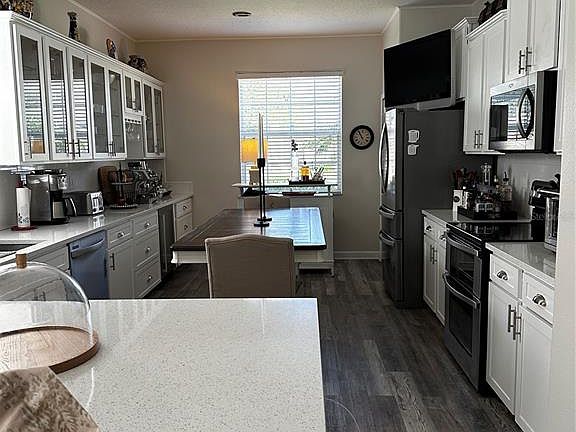 Welcome to this beautiful, move-in ready 3-bedroom, 2-bath, 2-car garage home located in the desirable community of Lakeside! As soon as you step inside, you’ll appreciate the home’s bright, airy ambiance, highlighted by high ceilings, abundant natural light, and an open-concept layout perfect for modern living. At the heart of the home is a spacious kitchen designed for entertaining, featuring wood cabinetry, quartz countertops, and newly installed flooring. The inviting living room offers plenty of space to relax and gather with family and friends while enjoying the peaceful outdoor views. The split floor plan provides privacy with a generously sized master suite overlooking the pond. The suite includes a walk-in closet and a large bathroom with dual vanities, a separate shower, a garden tub, and a linen closet. The second bathroom has been tastefully updated. Throughout the home you’ll find attractive tile and vinyl flooring. Step outside to a serene, fully fenced backyard featuring an extended lanai, a large hot tub, no rear neighbors, and relaxing pond views. This yard is perfect for gardening, entertaining, or even adding a pool. Residents of Lakeside enjoy resort-style amenities including a clubhouse, swimming pool, fitness center, basketball and tennis courts, dog park, playgrounds, and lakes. Conveniently located near US-19, SR-52, and the Suncoast Parkway, this home offers both comfort and accessibility. This one won’t last—schedule your private showing today!