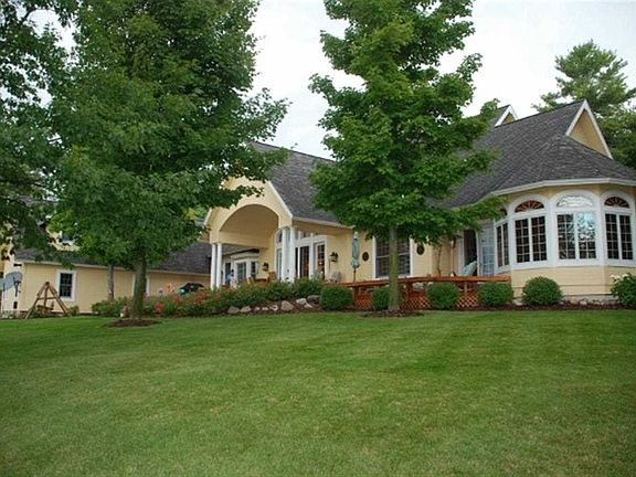 WOW! Perfection on Elk Lake w/200' of pristine private sandy frontage and stunning sunset views! Exquisitely appointed and meticulously maintained 4-5 BR, 4BA custom built home with attention to detail throughout! Features 1st floor master suite w/adjoining waterside sitting/sun room, as well as study/office. Absolutely charming and turnkey, great layout w/separate "suites" for entertaining guests, as well as abundant waterside living with spacious decking and adorable "beach/bunk house" ideal for water toy storage, studio, children's playhouse! SIMPLY A MUST SEE property!