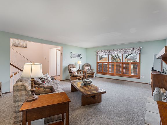 A MUST SEE~3Bedroom 2.5 bath Immaculate home in Pheasant Chase Subdivision of Plainfield. Brand new concrete driveway with extended bump out(extra parking) and redone concrete front steps welcome you as you pull up to the home. First floor generously sized living room with well-appointed fireplace and new carpeting is the perfect space for gatherings. Moving down the stairs is the dining room which is currently being used as an office(versatile), powder room with new light fixtures, first floor full sized laundry is privately located in a kitchen closet. The Kitchen was redone in 2018 including wood laminate flooring, cabinets, back splash, under cabinet lighting, stainless steel appliances, solid surface countertops, light fixtures, spacious pantry closet and a large breakfast bar that comfortably seats 4. Entertain guests in the large eating area/hearthroom with a warm and inviting gas fireplace. The kitchen has a sliding door with integrated blinds which looks out onto the brand new (2022)Concrete(25x15) patio and the beautifully landscaped partially fenced yard. A newly done brick pavered path leads to the front of the house. The Sunsetter awning is the perfect touch for sitting out and enjoying the patio/yard! Moving upstairs the primary bedroom has two separate large spaces that again are very unique and can be arranged in a variety of ways. 2 separate closets and full bath. The two other bedrooms have ample closet space and share a hallway bath. The fully finished basement consists of two separate rooms for many options. New stone wall ,new drop ceiling ,new carpeting~ all perfect for entertaining. Comed Energy assessment replaced all lights to LED and water conservation shower heads. Windows were replaced 5 years ago with maintenance free vinyl. Roof (2018), 36 Solar Panels(2019) leased from SUNRUN $82/month,Com-Ed=$14/month, Sunsetter Retractable Awning over patio (2021), Epoxy garage floor(2021), All new closet/pantry doors throughout (2021) Both gas fireplaces living room and kitchen have beautiful custom made mantles. Sellers will provide a 1 year home warranty!!!! Walking distance to the community playground and pond. NO HOA . Conveniently located in the Highly Accredited Plainfield School district. Abundance of shopping and restaurants! Welcome Home!