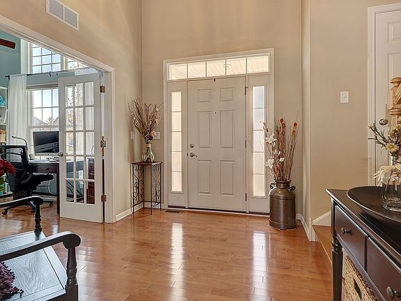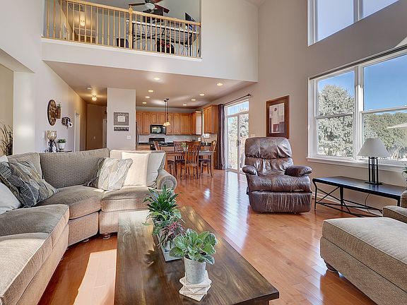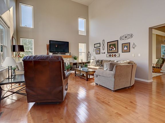 House Beautiful!!! FIRST FLOOR owners suite with walk in closet and luxury bath with heated floor, separate shower and soaker tub! Open floor plan offers a 2 story great room with fireplace and lots of natural light, den and dining room and laundry. Kitchen features 42" cabinets, granite countertops and reverse osmosis system. Hardwood floors cover most of 1st level. Second floor offers 2 bedrooms, loft and full bath. Finished 4th bedroom and storage room in full insulated basement. 3 car garage 32x22, epoxy floors, extra electric, 8 ft garage door. Large stamped patio. 2x6 construction. Newer updates (within the last 3 years): windows, A/C, furnace, humidifier, roof, hot water heater, wi-fi thermostat, Ring doorbell and dishwasher.