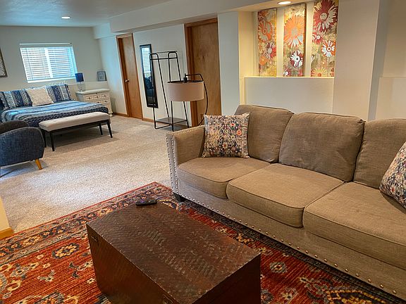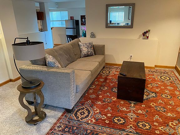 Spacious, serene 850-square-foot basement efficiency with private patio in peaceful Arvada home. $1,400, utilities included Available May 2, short or long term Appx. 64th and DeFrame Background job with good credit required * Private entrance * Fully set up with dishes, pots and pans, silverware, towels, quality pillows, bedding, books, games, all the way down to salt and pepper * Large & bright with double-paned windows, French doors * Bath w/ tile shower * Kitchenette w/ sink, refrigerator, toaster oven, microwave, hot plate, drip coffee maker * Smart TV * Shared laundry one floor up * Great area, lots of trails * 55 miles Loveland Ski Area, 75 miles to Keystone * 30 minutes to DIA * Close to downtown Golden & Olde Town Arvada House owner lives on upper two floors with friendly dog. Background check required
