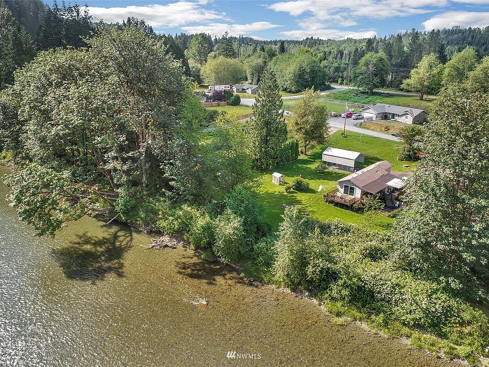 Fall asleep to the soothing sounds of the Stillaguamish River or lay outside and gaze upon the stars on this beautiful almost acre riverfront property. This is your opportunity to call this park like setting home. This one bedroom one bath home has a large family room perfect for all your get together's kitchen with eating nook. Work from home? Enjoy your office space or small bonus room. Step out on your large wrap around deck and enjoy your favorite beverage as you listen to sounds of nature. This private retreat feels like your hours away from civilization even though you are minutes to Arlington or Granite Falls. This home has outbuildings for storage and an Extra large shop for two cars and lots of room to spare.