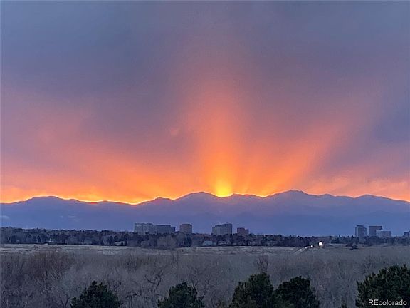 Perched at the eastern edge of Cherry Creek State Parks incredible 3,350 acre urban refuge, this serene residence indulges nature & claims unrestricted 100-mile views of the entire Front Range, including Pikes Peak, Mt. Evans & Longs Peak. Surrounded by mature landscaping, the private backyard offers immediate access to state park exploration via adjoining trails & is complimented with multiple alfresco entertainment opportunities atop a flagstone patio & elevated new Trex deck & railings accessible from both the gourmet kitchen & dining room. Inside, hardwoods fill the main-floor, & are paired with large windows & towering ceilings in the living room. A trayed ceiling & board and batten wainscoting enhance the dining room, while the eat-in kitchen claims an oversized center island decked with leathered quartzite, customized cabinetry & stainless-steel appliances. Towering ceilings & double-story windows continue in the family room & frame custom built-ins & fireplace mantel constructed of Colorado Beetle Kill Pine. A convenient home office with custom built-ins and French doors is adjacent the family room; down the hall is a half-bath, & laundry with tile floor, storage cabinets, utility sink & door to the 3-car garage. Hardwood stairs lead to the second-floor & are met by additional hardwoods lining the landing & loft or converted future bedroom. Hardwoods continue in the primary suite with pitched ceilings & sliding glass-door to a Trex balcony; the ensuite boasts travertine tile floor, a unique wraparound vanity with granite counters, shower with glass enclosure, soaker/jetted tub, private water closet & a walk-in closet outfitted with Elfa organization system. Two additional bedrooms include adjoining ensuites, each with travertine floors & granite countertops; one includes a double-vanity & private shower/water closet, and is accessible from the loft. Located near Parker Road for easy access to I-225, I-25 & E-470.