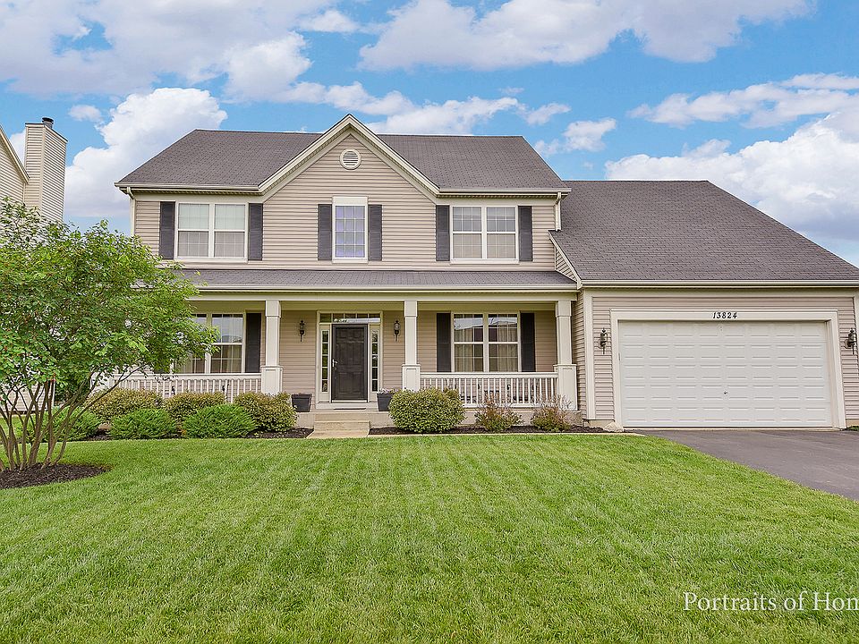 Looking for the perfect house for entertaining? Look NO further! GREAT floor plan featuring a grand double staircase & HUGE open kitchen w/ butler's pantry, granite counters, double wall ovens, stone back splash, hardwood floors, large island w/seating & so much more!Great formal living area/flex space plus a formal dining room too! Main floor also features an office that could be used as a main floor bedroom. Large laundry room w/storage & window to let in light! Upstairs there are 3 bedroom plus the large master bedroom with vaulted ceilings! Master has beautiful custom barn door that leads into a luxury en suite bath & a walk in closet so big it even has a window! Great partially finished basement w/LOADS of storage space! Backyard features a gorgeous custom pavilion w/stamped concrete patio with built in fire pit and grill area! Fabulous welcoming front porch with plenty of space for furniture or even a swing!!