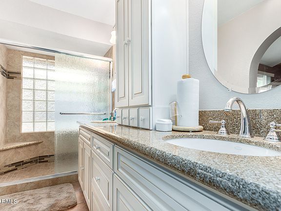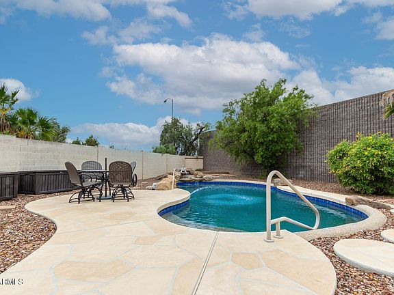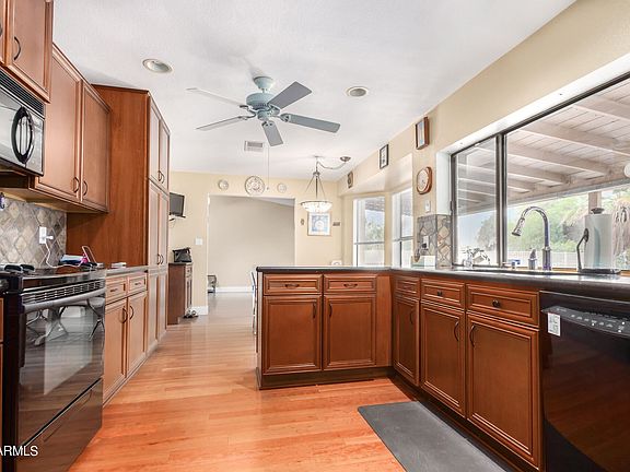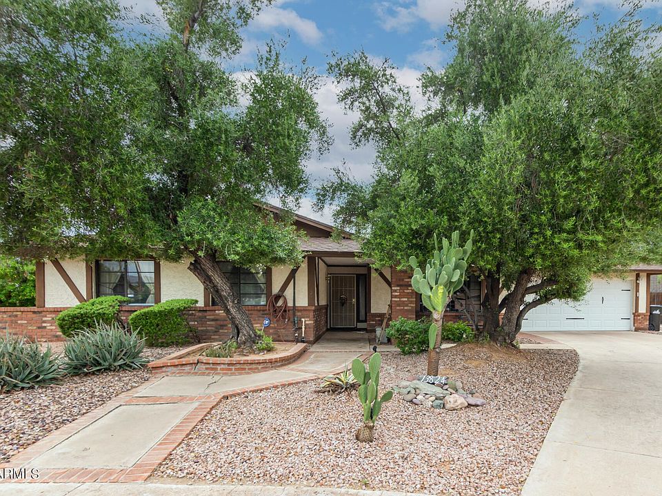 Spacious 4 bed, 2 bath single-level home, 2 car garage, RV gate, Pool & beautiful landscaping in a fantastic Scottsdale location! Inside is a formal dining/living area, designer paint, vaulted ceilings, family room w/brick fireplace, wood floors & plush carpet in all the right places. The kitchen has black granite counters, huge windows, plethora of staggered cabinets, recessed lighting, and a breakfast room w/bay window. Owner's suite has access to the back, walk-in closet, and an ensuite w/dual sinks. Hall bath has dual sinks with granite and tub/shower combo. Entertain your guests in this large backyard with a covered patio, BBQ area, and a sparkling fenced pool w/water feature for those hot summer days. Leased Solar panels, low elec bills. NO HOA! Easy access to 101 Fwy! Must see!
