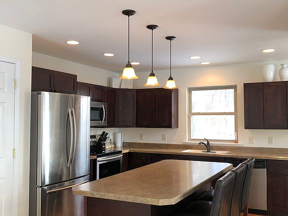 This private home on a near 5acre wooded lot offers a stunning view from the loft overlooking a large living room with cathedral ceiling & 2-sided fireplace. Spacious open kitchen features an island and teak flooring. Newly updated master bedroom features walk in closet and master bath. Den could be 4th bedroom. Addition added & totally updated in '09 with upgraded septic system, stamped patio, deck, fenced yard, 40x40x12 heated pole barn w/concrete floor. Meticulously maintained fenced in backyard redone in 2016. Whole house geothermal system installed in 2020 as well as new hot water heater in 2022 and newer kitchen appliances.