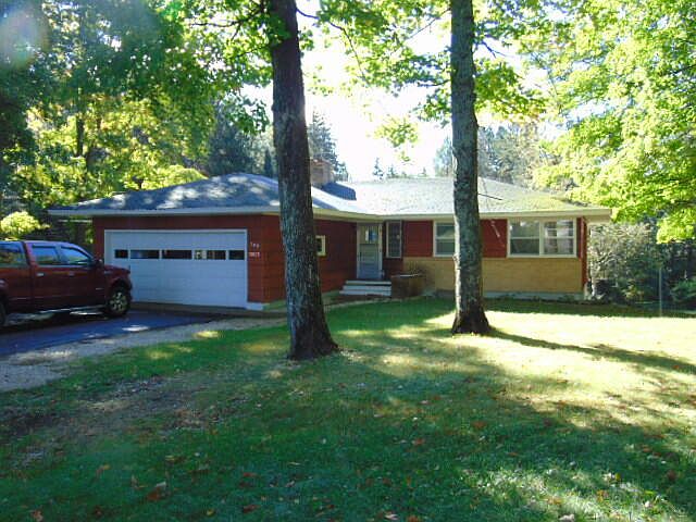 Ranch style home with 5 bedrooms and 3 baths that sits on 6.5 acres close to town. The main floor has 3 bedrooms, full bath and the master has a half bath. There is a living room, fire place, dining area and kitchen with great views of the back yard along with a small porch. Walk-out basement with family room, fire place,2 bedrooms, half bath and utility room that has a shower along with the washer/dryer. One of the bedrooms in the basement has built-in bunks The other bedroom is being used as an office. There is an attached 2 car garage and a detached garage to store the lawn equipment and snow removal. Beautiful back yard with gardens and shed. There is a nice large stand of red pines on the property which offers lots of privacy. New hot tub on the patio that is included with the sale.