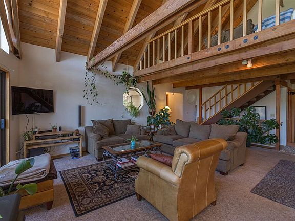 Don't miss out on this great Tahoe Donner home! Big beautiful windows in the main living/kitchen area. 2 bedrooms on main floor with master and loft area upstairs. This home gets a ton of natural light and has beautiful exposed wood ceilings. Very large 2 car garage with lots of room for storage/work space. Home has lots of Tahoe charm and hilltop views.