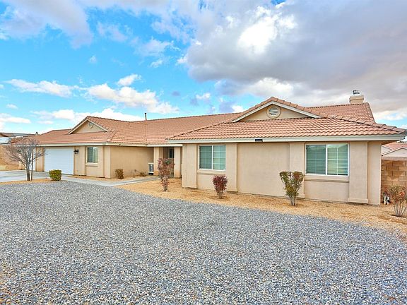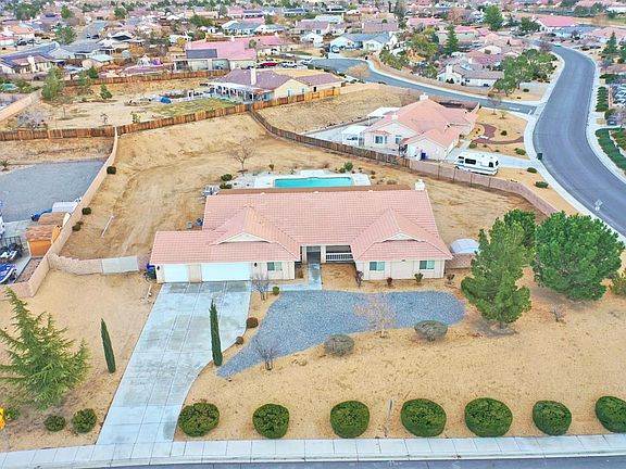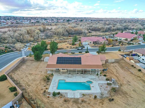 IN-GROUND POOL / SPA & OWNED SOLAR SYSTEM!! This Single-Story Ranch Style home with 6 bedrooms, 4 bathrooms, 3346 sqft of living space, & a 672 sqft 3 car attached garage. Over-sized 1 ACRE Corner Lot completely fenced with expensive block wall & wrought iron gates on both sides of the home with RV access & parking. Panoramic breath taking view from the front covered porch. Mesmerizing twinkling light view in the night!! In-ground 38'X 20' larger heated Pool/Jacuzzi with low variable energy pool pump. Located in Riverbend Estates of Apple Valley. Recently installed state of the art high capacity 9 plus kilowatts Solar system with Smart Technology. Split floor plan with vaulted ceilings, Large master w/walk-in closet & Jacuzzi tub. Spacious Entryway opens to a large living room and dining room, picture windows overlook the pool & larger full length covered patio with a huge back yard. The Family room features a cozy gas, stone fireplace w/raised hearth & mantle. The family sized kitchen offers upgraded Corian Counter tops, solid wood cabinets, double oven, stainless steel cook-top, microwave & dishwasher, the Cozy Breakfast nook area is surrounded by bay windows with view of the pool. Upgraded Flooring in Kitchen, Laundry, Master and Bathroom. Network System with Ethernet Ports, Hardwired Security, Extra Long Drive Way. No HOA's, CCR's or Mello Roos Fees. This one original owner, well cared for home with pride of ownership is a must see'' with too many features to list.