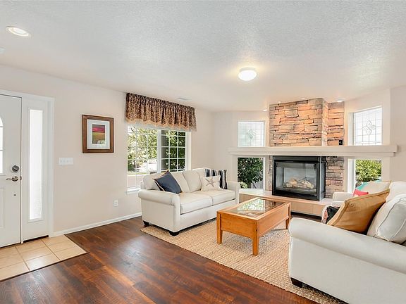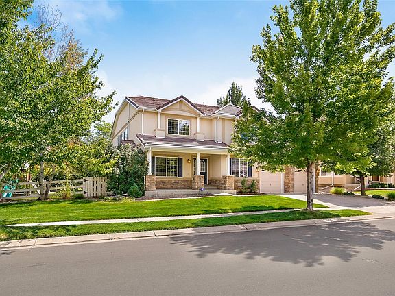 Updated 2-story Broadlands home with great curb appeal situated on a beautifully landscaped 1/4 acre lot. A welcoming front porch leads into the entry with abundant natural light, a stunning stone accent wall and an open floor plan. The living room features a beautiful gas fireplace with stone surround accented by leaded glass windows & opens to a spacious dining room. Fantastic oversize kitchen features beautiful countertops, s.s. appliances double ovens and gas stove with professional grade vent hood, center island pantry and 2 large windows. Upstairs is an ample and versatile loft space along with the impressive master suite that features a large sitting area and en-suite 5 piece bathroom. 3 additional bedrooms and 2 full bathrooms complete the upstairs. Enjoy plenty of storage in the 3 car tandem garage with workshop area. Spacious fully fenced backyard includes a gazebo with hot tub, large Trex deck with sunshade, garden area, and lush lawn. Great property in prime location!