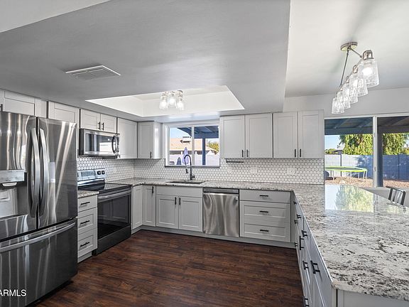 The backyard is perfect for entertaining, featuring a heated pool installed just 4 years ago, perfect for year-round enjoyment & gatherings with family & friends. The property is ideally situated with no HOA, giving you the freedom to truly truly make this home your own. Located right next to ASU West, it's a prime spot for students, faculty, or anyone looking to be near excellent schools, shopping, dining, & amenities