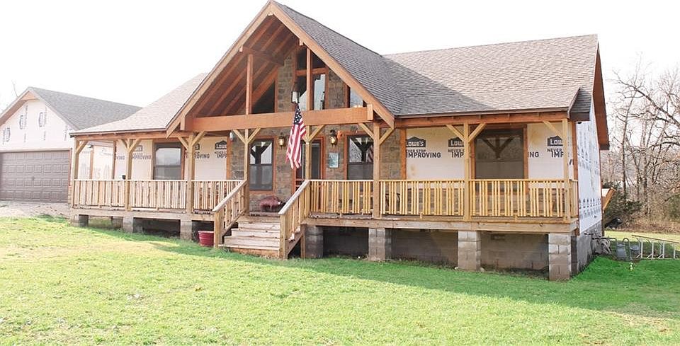 . 3 bedroom - 2 bath with 2 car garage on 3.45 acres. Split floor plan. Gas log fireplace with nice rock work separates living and dining rooms. Garage has 1/2 bath. Large back deck with bench railing. Covered front porch. Nice setting.