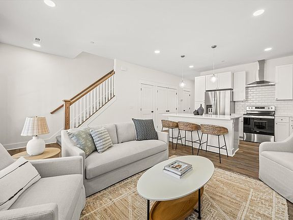 The TRISTAN is located in a stylish new development known as the Highbury. Homes with a zero lot line conveniently located near restaurants, shopping, I-40, & Hwy 111. Walk up to upper & lower covered front porches & comfort of resort style living. This home boasts maximized square footage with 1634+/-sqft. It has exquisite finishing touches including quartz countertops, stainless steel appliances, tile backsplash, LVT flooring on main level with carpeting in the bedrooms upstairs. The master bedroom is located on the main level with a double vanity & custom tiled shower. The upstairs offers 2 bedrooms, a bath & a FLEX room which could be a 4th bedroom. The HOA includes the amenities of a POOL, PICKLEBALL COURT, & lawncare. Pictures are from a staged home with the same floorplan.