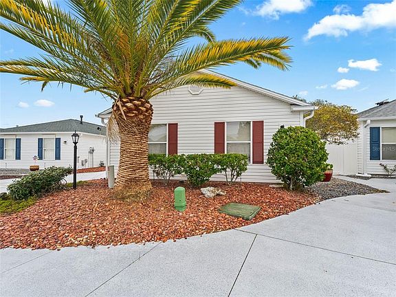 Location, Location, Location!!! As you walk up to the home, you will notice the painted driveway and tiled entry leading up to the leaded glass front door. This beautiful 2 BR 2BA with Den/Office Villa is nestled in the highly desirable Village of Liberty Park ideally located between Lake Sumter Landing and Brownwood Town Squares. The open floor plan boasts tile flooring throughout with laminate flooring in both bedrooms. Off the den, is a lovely courtyard with mature plantings and is the perfect place to relax with a good book. Honey Oak Cabinetry compliments the kitchen and bathrooms. There is even a pantry closet in the kitchen. Other features of this lovely one owner home include two Solar Tubes, a pocket door that truly makes a guest suite for your visiting guests, a Roof that was replaced in 2020 and the AC being replaced in 2016. Best of all, the Bond is PAID. The only thing missing is YOU. Give me a call. I'd love to show you this lovely home so you can make it your own.