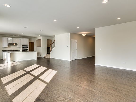This Westchester includes hardwood floors & has an open concept with built in kitchen appliances, an enormous island & 3 car front load garage. It's on a large corner site near the pond with a deck & full finished lookout basement.