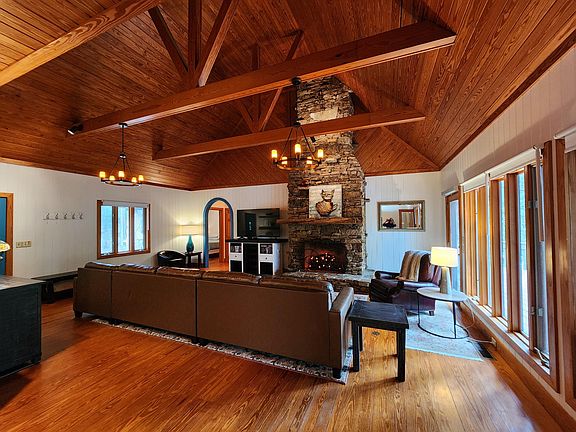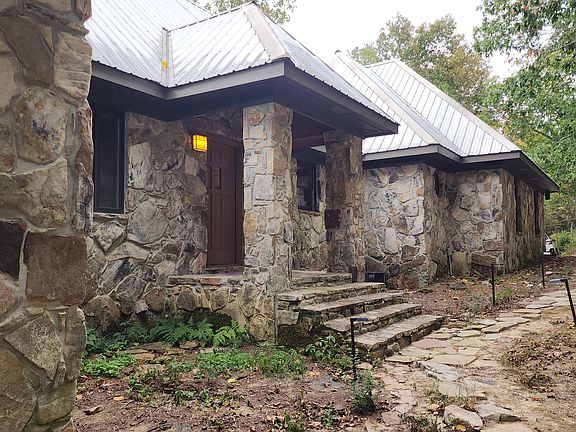 Mentone Stone Lake House on Lookout Mountain. Custom features include a vaulted timber frame great room w/ beautiful stacked stone fireplace and heart pine floors throughout. The kitchen is spacious w custom cabinets, granite, built in oven and micro, wrap around bar seating and dining adjacent. The 3BR2B split plan living also includes an additional studio area, mud room, laundry room and attached 2 car garage. From the living area step outside to the large screened porch & deck area looking out to the lake & your private floating dock on 674' of lake frontage. Other great outdoor features include a stone gate, washed pea gravel driveway w extra parking, fencing , an outdoor shower, lower level covered stone seating area and a generous basement area for additional storage. Currently in short term rental & can be sold furnished or turn key. Appointments required . Priced $750,000.00