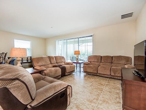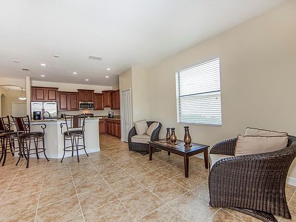 Experience Championsgate!!! Located 15 minutes to Disney this Beautiful Golf course community offers Tennis, Golf, 20,000+ sq' club house with restaurant, fitness and business center, movie theatre, games room, and much more, lazy river, water slide, multiple swimming pools, private community with manned gated security. This pool home was a vacation property and was barely lived in and shows like new!!! Gorgeous pool and spa surrounded by paver deck with private pool bath and fire pit in a private setting on a larger lot. Exterior has paver drive and a tile roof. Open, bright, and airy this property offers lots of tile, upgraded kitchen with 42" solid maple cabinetry, granite counters, and stainless appliances. The oversized master suite has direct access to the private pool area, has a master bath with large elegant shower, his and her vanities. Compare the value of this "like new" pool home to new construction prices!! This home is "ready now!"