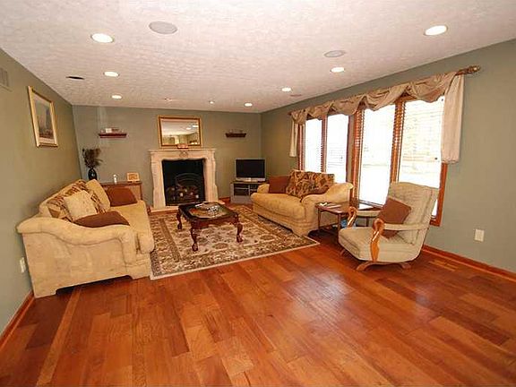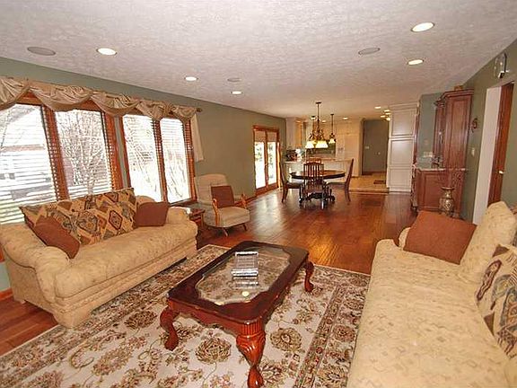 Fabulous two-story w/mature trees in sought after Springmill Crossing. Incredible newer gourmet kitchen w/granite & appliances included. Built-in Butler's Pantry. Brkfst Bar. Great rm w/custom cast limestone fireplace mantle. Handscaped hardwoods throughout main floor. Finished basement wired for surround sound + full bath. Extra rm in basement could be used as guest room. New carpet and paint. Huge screened porch with deck overlooking beautifully landscaped yard.