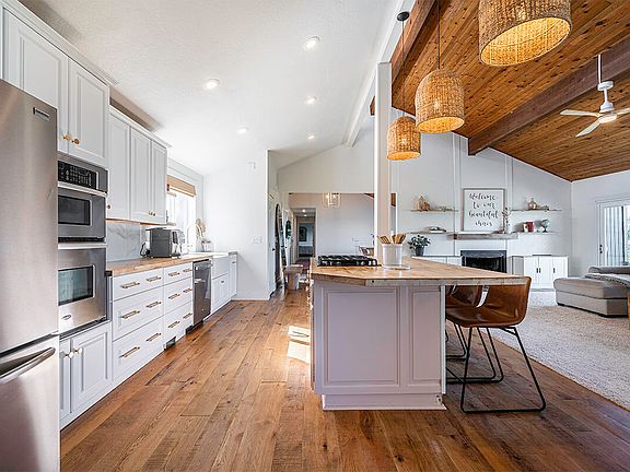 Location, location, location! Looking for an updated view home in the hills of East Medford? If so, this is the one for you! This 3100+ sq ft home features 4 bedrooms, 3 bathrooms, vaulted ceilings, open floor plan, multiple decks, detached 2 car garage, RV parking, woodburning fireplace, central vacuum system, laundry chute, spacious yard, and potential multi-family set up (kitchen hook ups are installed on the lower level)! Over the last few years, owner spared no expense by updating the majority of the interior with new flooring (re-claimed solid white oak, vinyl, tile, carpet), new kitchen (butcher block countertops, cabinets, lighting, appliances, farmhouse sink), light fixtures, slider doors, windows, knobs, jetted tub, tile backsplash, deck railings, and much more! Very rare opportunity to purchase an updated property in this location for this price, so contact your agent today for a personal tour, before it's too late!