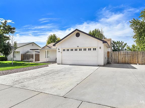 Wonderful single level home located in Kuna, ID within walking distance of park. Paved RV parking in front and back! 3 bedroom, 2 bathroom, split floor plan features vaulted ceilings in family/dining/kitchen area. Covered back patio, fully fenced, graveled side yards, fire pit, garden beds, and storage shed. This home is set up perfectly for outdoor entertaining!