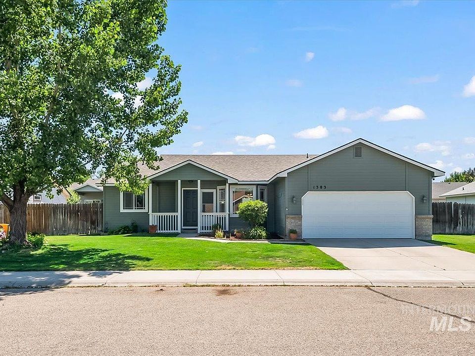 Charming single level home in Kuna with a spacious kitchen, wonderful backyard with a huge garden! Walking distance to the brand new Kuna Boys & Girls club! This split bedroom floor plan is a great starter home and or investment property. You will be greeted by the large living room with vaulted ceilings, functional dining area and a great primary bedroom with a walk in closet. The west facing fully fenced backyard is wonderful for afternoon sun, there is plenty of space for a shed, potential RV parking and a huge garden oasis. Updates to the home include a new roof 2021, water heater 2020, HVAC/AC 2019, and new garage door 2019. The garden has a new drip line system that is used solely for the garden and runs off irrigation. There is also a gas stub in the kitchen behind the current oven/range if you would like to have a gas oven(currently there is an electric oven/range.) Must see in person for everything this home has to offer!