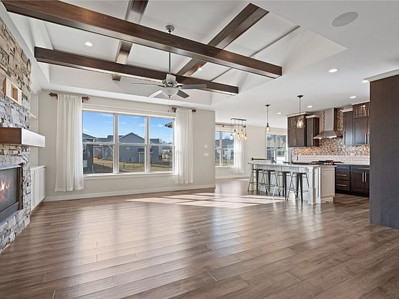 Welcome to your dream home, where elegance meets functionality! This beautifully designed residence boasts an open-concept living space that is flooded with natural light. As you enter, you’ll be greeted by a charming front porch featuring a tray ceiling, setting the tone for the inviting interior. The heart of the home is the great room, adorned with stunning cross-wood beams and a cozy stone-surround gas fireplace, complete with built-ins on both sides. The split bedroom floor plan offers privacy, with two bedrooms situated on one side and the luxurious primary suite on the other. The kitchen is a chef's delight, featuring a breakfast bar, a corner pantry, and ample cabinet space. Crown molding and glass-front cabinets add a touch of sophistication, while the stainless steel hood vent, pot filler, and stylish tile backsplash enhance both functionality and aesthetics. Retreat to the primary suite, where comfort meets luxury. The en-suite bathroom features dual sinks, a walk-in tile shower with a glass front door, a spacious walk-in closet, and a sunken tub surrounded by custom tile. Step outside through the atrium-style walk-out to a concrete patio and firepit, perfect for entertaining or enjoying quiet evenings under the stars. The lower level is designed for relaxation and fun, with plenty of daylight windows, a wet bar with mini fridge space, two additional bedrooms, another full bathroom, and ample storage. This home is equipped with a sound system that spans the primary bedroom, bathroom, great room, basement, and outdoor areas. The drop zone area right inside the 3-car attached garage features plenty of shelving options for all your storage needs. Additional highlights include: a sump pump with battery backup, a reverse osmosis system that connects to the refrigerator, and a fully fenced yard. Located close to Hunters Ridge Golf Course, Lowe Park, and Linn Mar High School. Seller has verbally accepted an offer.