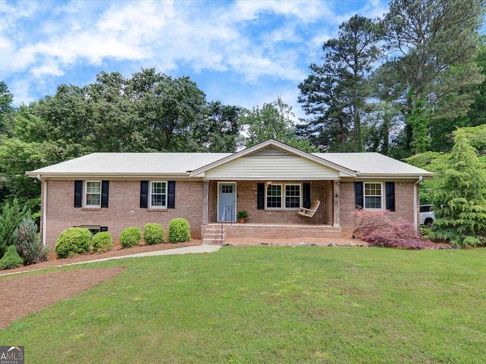 Welcome to this stunning home, perfectly situated on a large, serene lot in East Cobb. The classic 4-side brick ranch design is timeless and offers a welcoming front porch leading into an entry foyer. Inside, the living room/flex space is bright and sunny and is adjacent to the dining room, ideal for entertaining guests. The eat-in kitchen with updated appliances, opens to the family room. Here, a charming brick fireplace adds warmth and character, and a sliding door provides access to a large entertaining deck. This outdoor space overlooks a tranquil, fenced backyard, perfect for relaxation and various outdoor activities. The spacious primary bedroom features an updated en-suite bathroom, ensuring comfort and privacy. Two additional large bedrooms share a beautifully updated hall bathroom, providing ample space for family or guests. The lower level includes a 2-car garage and an open basement area with laundry facilities. This space offers potential for additional living areas or can be used for storage or a workshop, depending on your needs. Located in a convenient area close to shopping, dining, schools, and entertainment, this home offers both comfort and practicality. Plus, there is no HOA, giving you more freedom to enjoy your property. DonCOt miss the opportunity to make this beautiful updated ranch your new home in East Cobb!