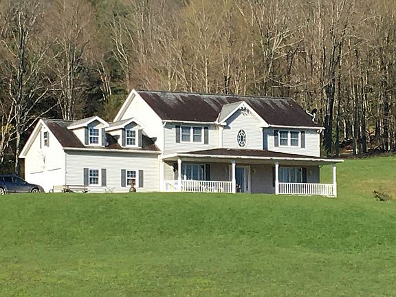 Beautiful hillside home with sweeping views of the Endless Mountains. Spacious three-bedroom, 2 ½ bath with stunning foyer, formal living room and inviting family room affording beautiful views of the mountains. Heated above-garage office/bedroom and heated four-season sunroom. Master suite with walk in closet and large bathroom with jacuzzi tub. Full basement with custom shelving. Full length covered front porch. Stocked pond with swimming dock, wooded trails for walking or ATV, 150yd shooting range. Alarm system, central vacuum system. Large storage shed. 2300 square ft. home on 39.25 secluded acres of mostly wooded land filled with deer, turkeys, and grouse. Sportsman’s paradise! Mineral rights included. Call/text the owner directly for a quick response. 315-399-0216