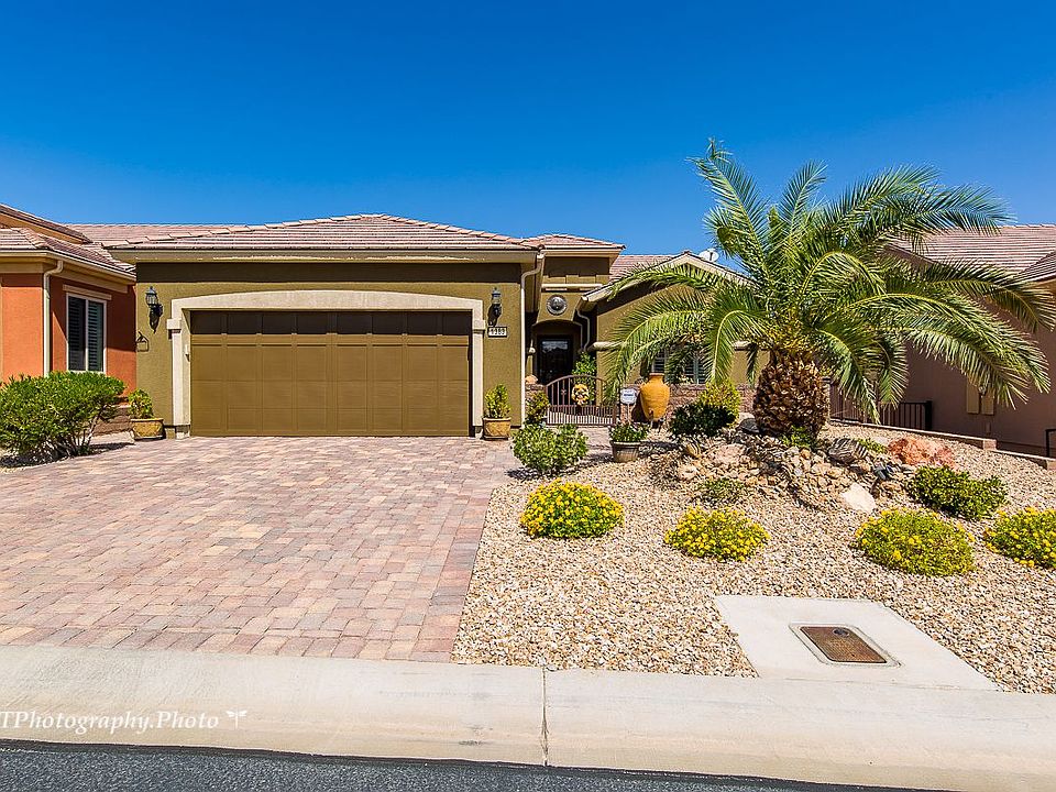 This well appointed turnkey Laurel floor plan on the 12th fairway of the Conestoga Golf Course is move in ready! $75,000+ in upgrades begin with a brick pavers driveway and inviting front entry courtyard. The home has custom interior paint, upgraded diagonal tile, crown molding and plantation shutters throughout. This home has a private Den/Study. Stainless steel appliances, raised cherry cabinets with pull out shelves and tile back splash in the kitchen compliment the center island and granite counter tops. Bathrooms are remodeled with tile showers and vanities. Solar tubes in master bath and closet, laundry room and kitchen bring an abundance of sunshine into this home. New classy closet shelving in pantry and all closets. Rear patio has been extended to the full width of the home and has pergola awning, privacy louvers and pavers. Garage has custom cabinets, utility sink, epoxy flooring and rubber tiles. The yard is fully fenced, beautifully landscaped with a cascading waterfall and desert xeroscape plants and trees. Views of Mesquite's signature mesa, 12th Fairway, northeast mountains and backyard amenities make this your oasis in the desert. SIDS PAID!!