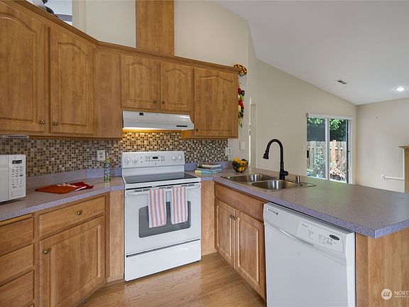 Soaring ceilings, natural light and gleaming hardwood floors welcome you into this Silver Firs rambler! Immaculate, move-in ready and light-filled with 3 bedrooms & 1.75 bathrooms. Open kitchen flows into eating space & family room w/wood-burning fireplace. Oversized living space, vaulted ceilings and a wall of windows brings the outdoors inside. Private, fully fenced backyard boasts a huge patio, inviting gazebo, children’s playhouse and convenient garden shed/workshop that borders green space. Raised garden beds include mature berry vines. Garage has built-in cabinets and plenty of overhead attic shortage. Community parks & trails. Close to all that Silver Firs & Mill Creek have to offer. Easy I-5 & Hwy 9 access. Everett School District.