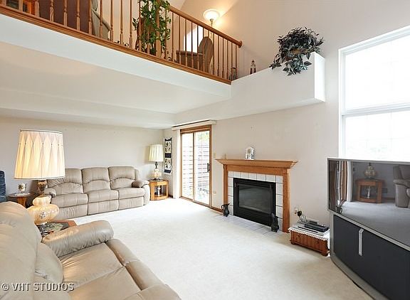 Spacious end unit with beautiful pond views! 2 story living room features fireplace and sliding glass door to private patio. Kitchen has plenty of cabinetry and bay eating area. Master suite with sitting room and his & her closets. Easy conversion to 3rd bedroom. Bathroom with tub and separate shower. Loft overlooking living area. Great views out of every window. 2 car garage. Convenient location! 2 minutes to I-55!