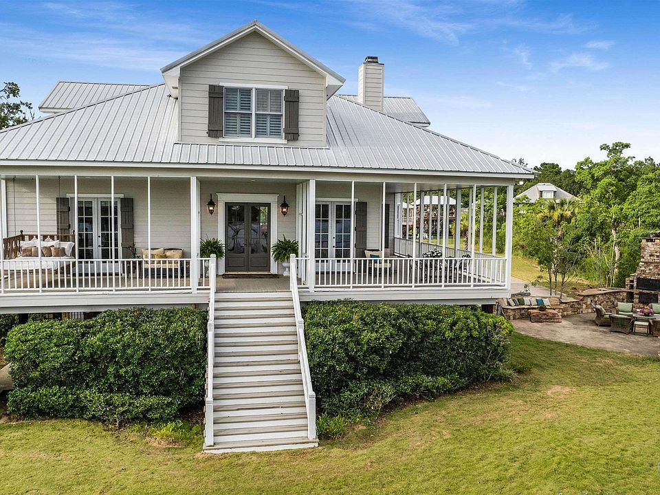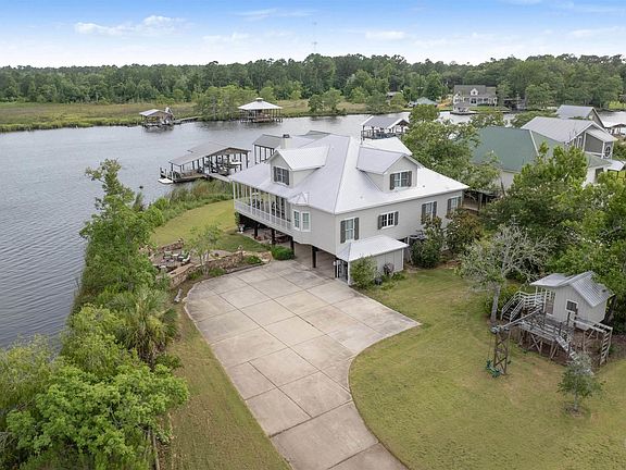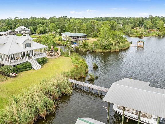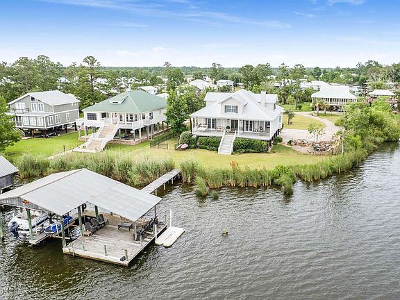If Detail is what you’re looking for look no further, this home has a timeless elegance and modern upgrades, this immaculate 5-bedroom, 3-bathroom home showcases repurposed brick accents in the kitchen and guest bath, adding a unique touch of character. Situated on a peaceful corner lot by Fish River, this retreat offers a rewarding escape with the incredible waterfront views from almost every room in the house. Spanning 4,040 sq. ft., the residence features antique heart pine floors, a 100+ year old solid wood mantle and doors, and beautiful open concept. The main floor hosts a luxurious primary suite with a garden tub, a spacious dual-head shower, dual sinks, a walk-in closet, and a private water closet. A guest room and bathroom are also conveniently located on this level. Upstairs, discover three additional bedrooms, a full bath, an open den, and an office, providing ample space for family and guests. Below, an enclosed garage, covered parking, and an outdoor bathroom with shower offer practical amenities. The expansive yard includes a playhouse, fenced pet area, and beautifully landscaped gardens. Outside, an impressive outdoor entertainment area awaits with a fireplace, smoker, grill, TV, sink, and multiple seating areas—a perfect setting for gatherings. The pier boasts a boat house with two boat lifts, a jet ski lift, power, water, and breathtaking river views. Residents enjoy unique amenities like mail delivery by boat along the river and access to a neighborhood boat launch. This exceptional home, blending historic charm with contemporary comforts, promises a lifetime of cherished memories in one of Fish River’s most coveted locations. Buyer to verify all information during due diligence.