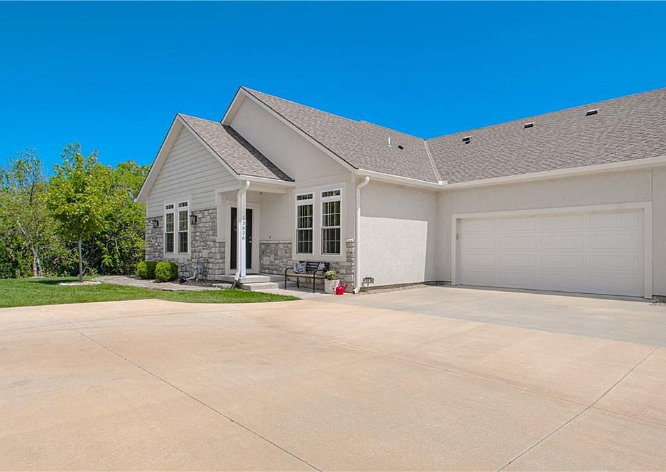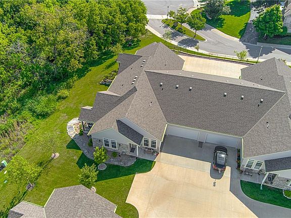 ABSOLUTELY WOW! Published designer's own home. Nothing was overlooked in this gorgeous, boutique masterpiece! All three bedrooms are on the MAIN LEVEL, TRUE RANCH LAYOUT! So much privacy, bird watching and wildlife observation from the deck. Upgrades galore, and a well thought out, and efficient use of space. High vaulted ceilings, and a lovely open floor plan with french doors added to maximize the view to the dramatic wooded backdrop. Upgraded modern lighting, upgraded landscaping, additional wiring in pantry for small appliances, upgraded fireplace, upgraded quartz counters, expertly chosen painted cabinets; all adds to the high end, luxurious ambiance experienced here! An excellent home choice for the entertainer. Don't miss the walk out basement, that awaits your finishing - or can be used for storage, fitness space, roller skating :-), etc! MAINTENANCE PROVIDED LIVING in the heart of Johnson County! This one is a must-see! WELCOME HOME!!